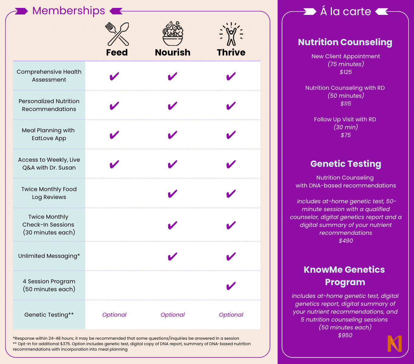 Nutrition Services are offered through KnowMe Nutrition.